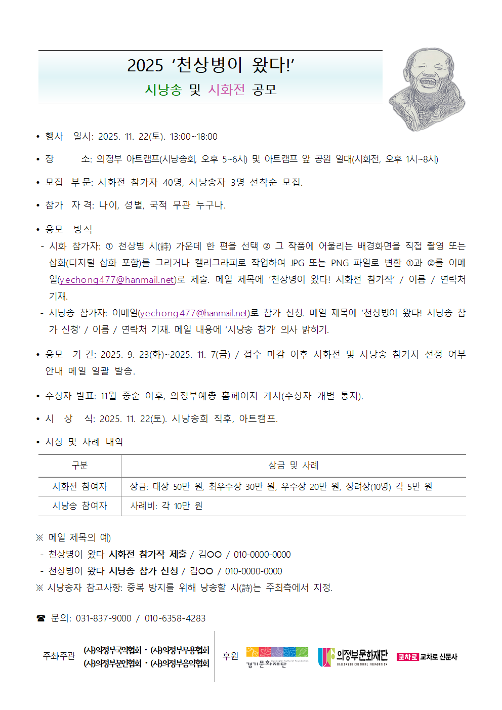 ‘천상병이 왔다!’ 시화전 및 시낭송회 참가자 공모