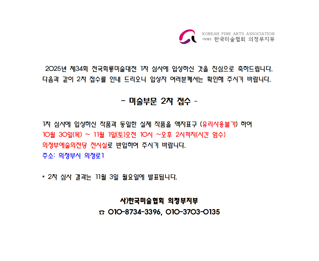 2025 제34회 전국회룡미술대전 미술부문 1차 심사 결과 발표 2025-10-24
